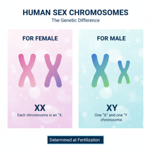 للذكر: يكون الزوج الأخير من الكروموسومات هو XY.